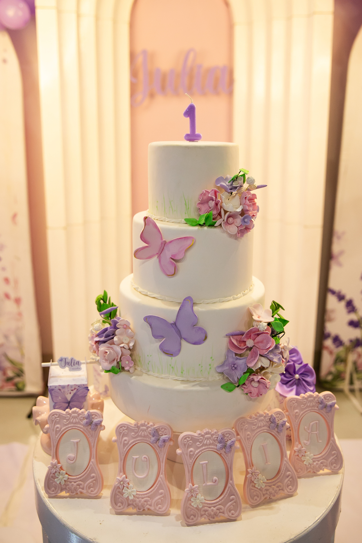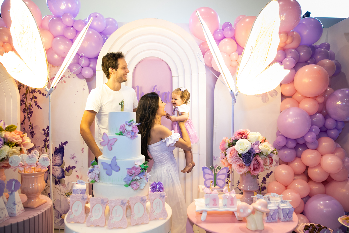Normalmente a gente pensa que as crianças não aproveitam a sua primeira festinha, mas a Júlia nos mostrou que é possível, se divertiu muuuito no seu aniversário! Foi muito fofo presenciar a alegria dela! Que teve uma festinha linda, toda delicada de borboletas!